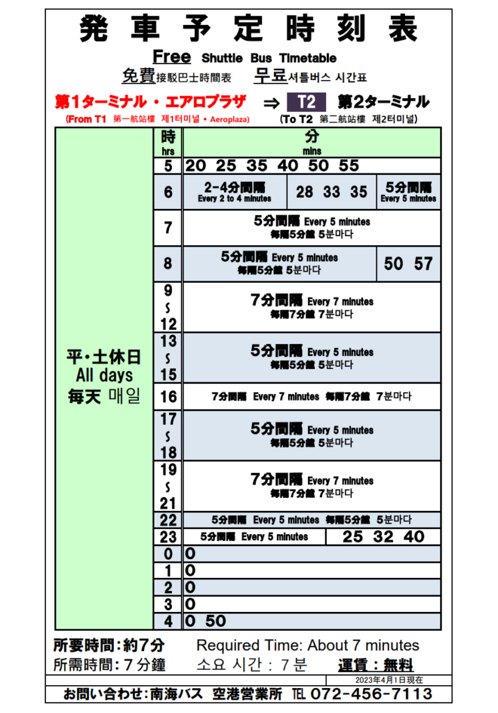 エアロプラザから第2ターミナルまでの乗車時間は7~9分です。
